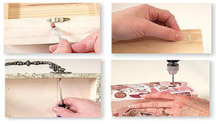 Use the screwdriver to remove the hardware from the box; set the hardware aside. Or, use masking tape to cover the hardware, trimming it around the edges to expose all the wood surface.