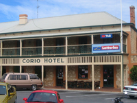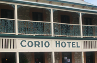 Built in 1858 and named after the paddlesteamer 'Corio" which sank in the Murray River in 1857. The now National Trust listed hotel has continued to operate ever since and has maintained its comfortable, historical atmosphere. Aninteresting feature of the hotel is the Great Yankee Doodle Tobacco ceiling posters. The posters are reproductions of a painting call The Spirit of 76 by Archiblad M Willard. The original painting, titled Yankee Doodle , was a humorous depiction of the Fourth of July celebrations, but was changed from humorous to patriotic for the Centennial Exposition of 1876 in Philadelphia USA. Coloured reproductions, like the ones on the ceiling of the Corio, were sold prior to the centennial under thier new title "The Spirit of 76"